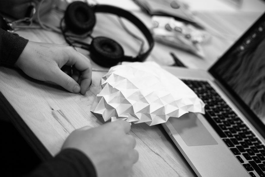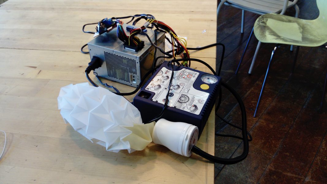 Nutikate pindade töötoa üks tulemusi - pneumaatilise varjualuse mudel, autorid Helmi Marie Langsepp, Kristel Alliksaar, Eden Offer