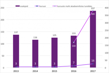 Eelakadeemias osalejate arv, kursused ja kursuste maht viimase viiel aastal.