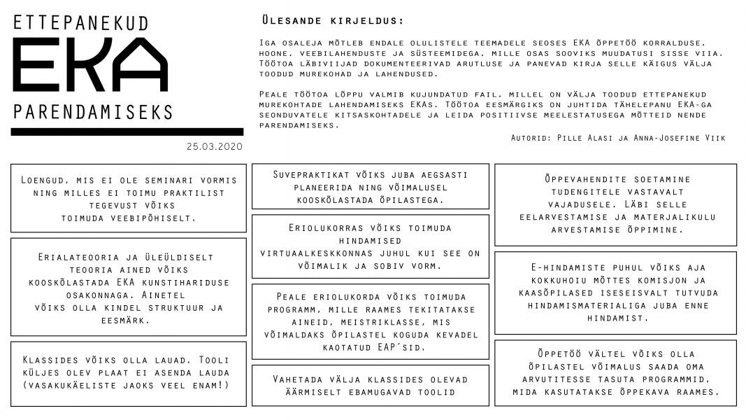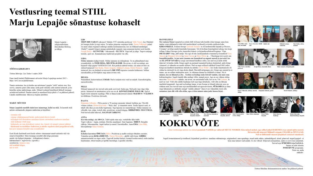 Tudengid: Anna-Josefine Viik, Daana Loreen Kägra, Elis Raud, Jelizaveta Kukoleva, Liis Tedre, Liisa Eomois, Pille Alasi, Anastasia Oberg