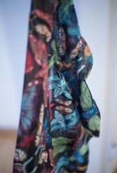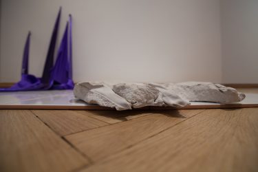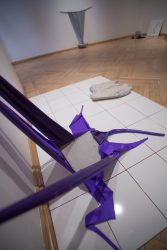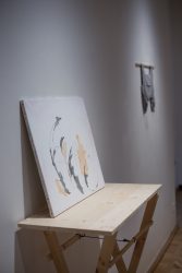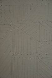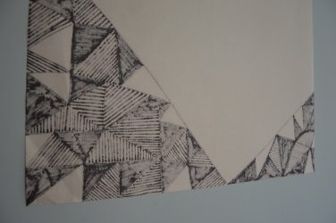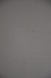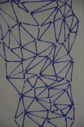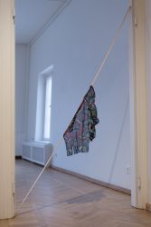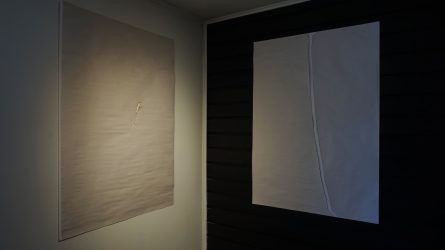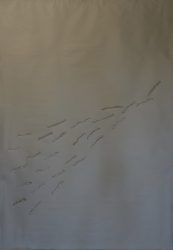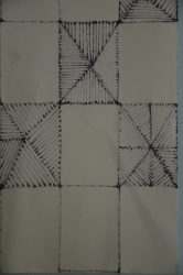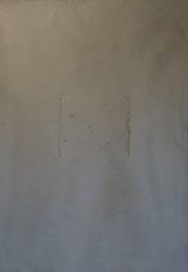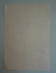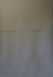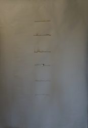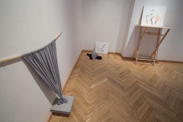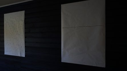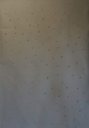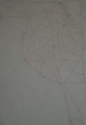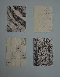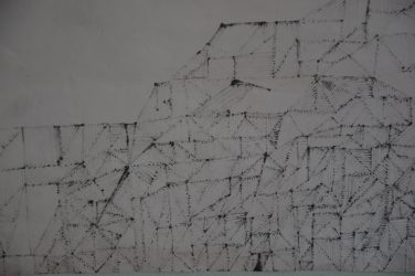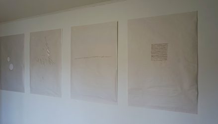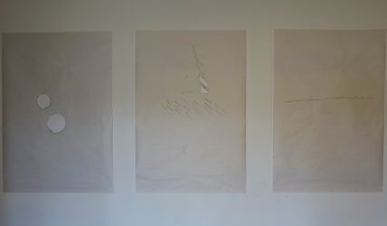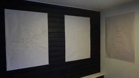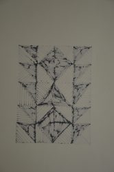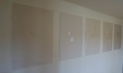Mõtestasin selle protsessi jooksul joonistamist läbi enda kogemuse. Minu jaoks joonistamise funktsioon on olnud alati harjutamine. Millegi läbi tegemine, enne, kui see muutub reaalse maailma osaks. Installatsioonis eksponeeritud joonistustes kasutasin ma õigupoolest ainult joont. Ühte ja sama joont sadu, tuhandeid kordi korrates tekkisid pinnad. Samamoodi võib mõtestada kangast kui ühest joonest, niidist või lõngast läbi korduse moodustunud pinda.