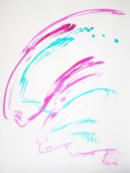 Loomise protsess oli pigem alateadlik ⏤ see oli nagu teraapia, kus käsi sai liikuda vabalt ning kanda minu emotsioonid ja tunded paberile. Seeria alguses töötasin joontega, seejärel lisandusid värvipritsmed ja -laigud. Jälgisin, kuidas need omavahel mõjuvad. Seeria lõpus katsetasin erinevate toonidega, mis üksteisega sulandusid.