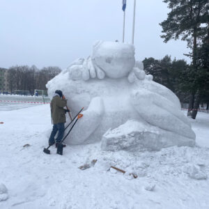 “Hiinas on traditsioon vabastada 29. jaanuaril puuriloomad ja paluda oma ellu õnne. Eelmisel aastal tegin puukonnast lühianimatsiooni ja panin keraamilised konnad vee peale ning osad külmutasin ära. Filmides ei kujutanud ma ette, et 2024.aastal teeme päriselt sellest lumekonna.