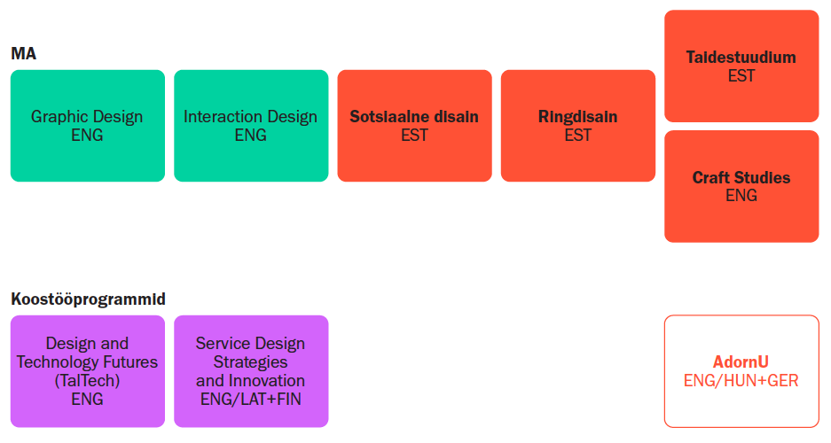 • Sotsiaalne disain (eestikeelne õppekava, eestvedaja külalisprofessor Francisco Martinez);