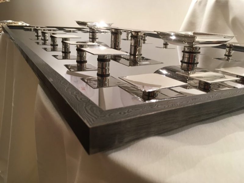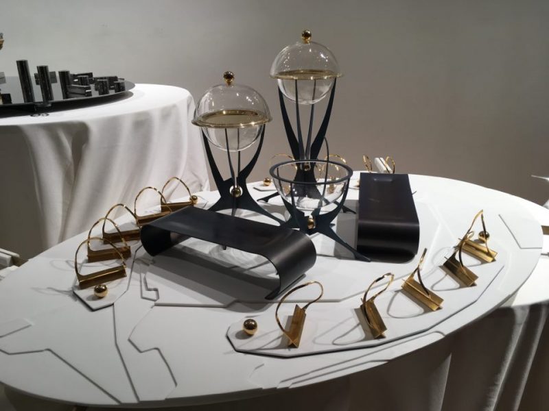 Tehnikatest ja materjalidest oli esindatud anodeeritud titaan, valge corian, kullatud elemendid, puhutud klaas, trugitud, joodetud ja söövitatud messing, kõrgpoleeritud roostevaba teras, hõbetatud ja trugitud vasesulamid, damaskuse teras ja laserlõigatud metallid jpm. Teosel on alati spetsiifiline funktsioon ja kontseptsioon antud toidupala kandmiseks.