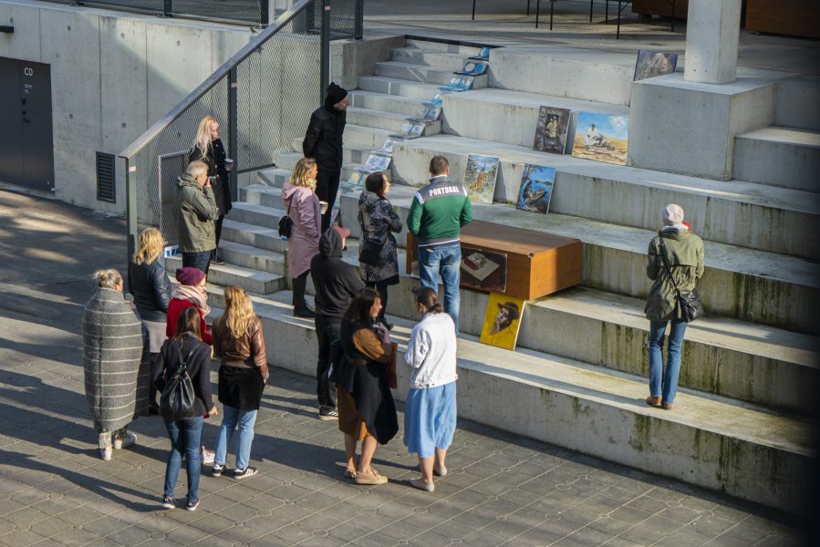 EKA avatud akadeemia kursuse “Maalikunsti A, B, C… ja Z” lõpetamine toimus sel aastal väga erilises kuues. Õue päikese kätte ei tulnud ainult lõpetajad, vaid ka maalid ise. Kursusel osalejate tööd leidsid endale põnevaid nurki Eesti Kunstiakadeemia sisehoovis, kus arhitektuuri ning värelevalt muutliku valguse ja varju hõlmades saavutatud taset nautida.