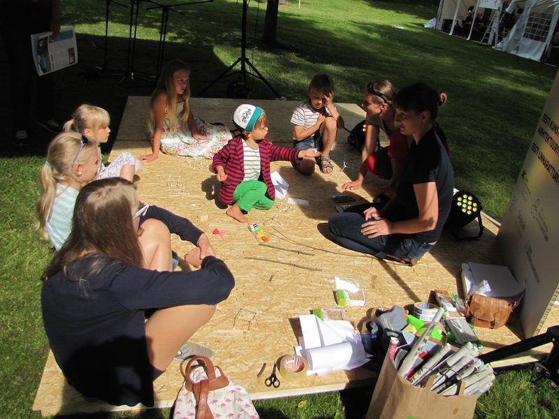 Hommik algas Eesti Arhitektuurikeskuse arhitektuuri huvikooli tunniga, kus juhendajad Kadri Klementi, Katrin Koov ja Kaire Nõmm koos lastega arutasid mis on ruum ja kuidas erinevatest ruumidest saab kokku elukeskkond, milline on hea ruum. Katsetati, kuidas mõõta ruumi. Prooviti järgi lihtsaid konstruktsiooni põhimõtteid. Uuriti, kuidas käituvad erinevad materjalid ning meisterdati 1:1 varjualune.