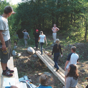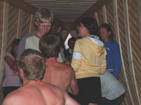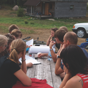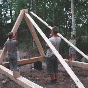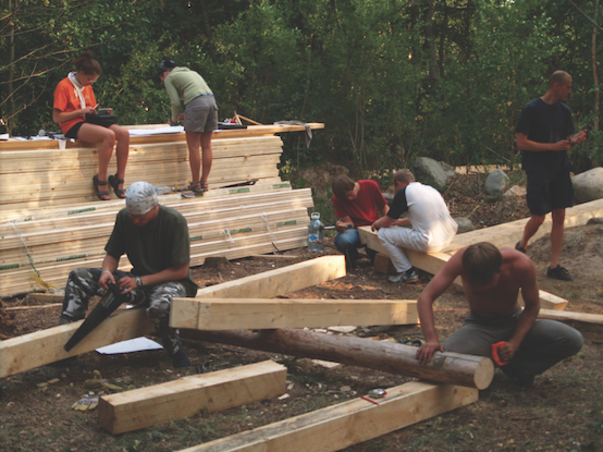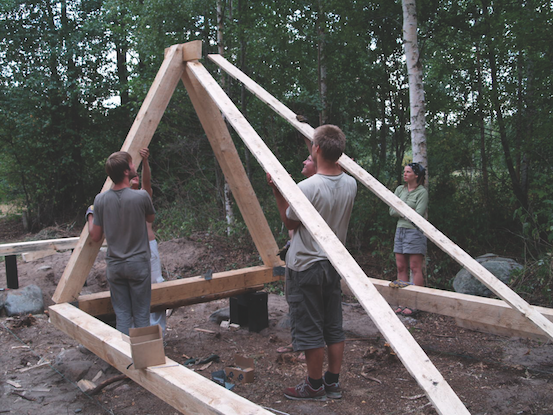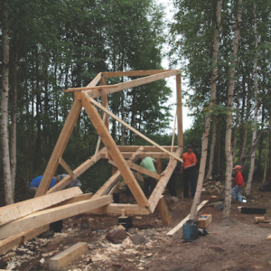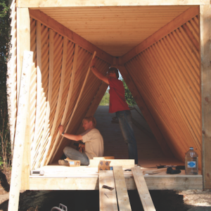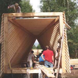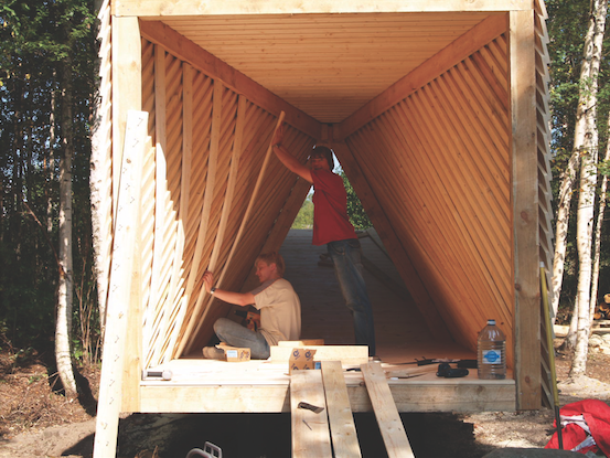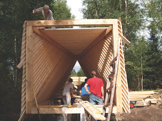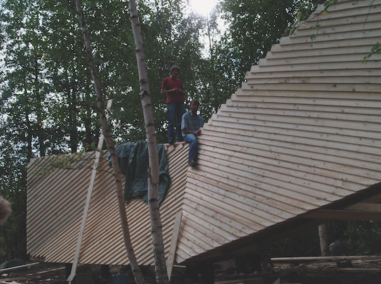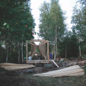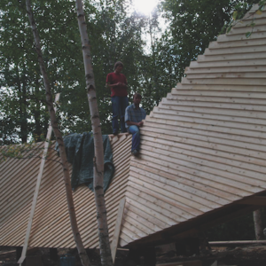 Varjualuse autor on Anu Arm, ehitajateks 12 I kursuse arhitektuuri ja linnaplaneerimise eriala üliõpilast.