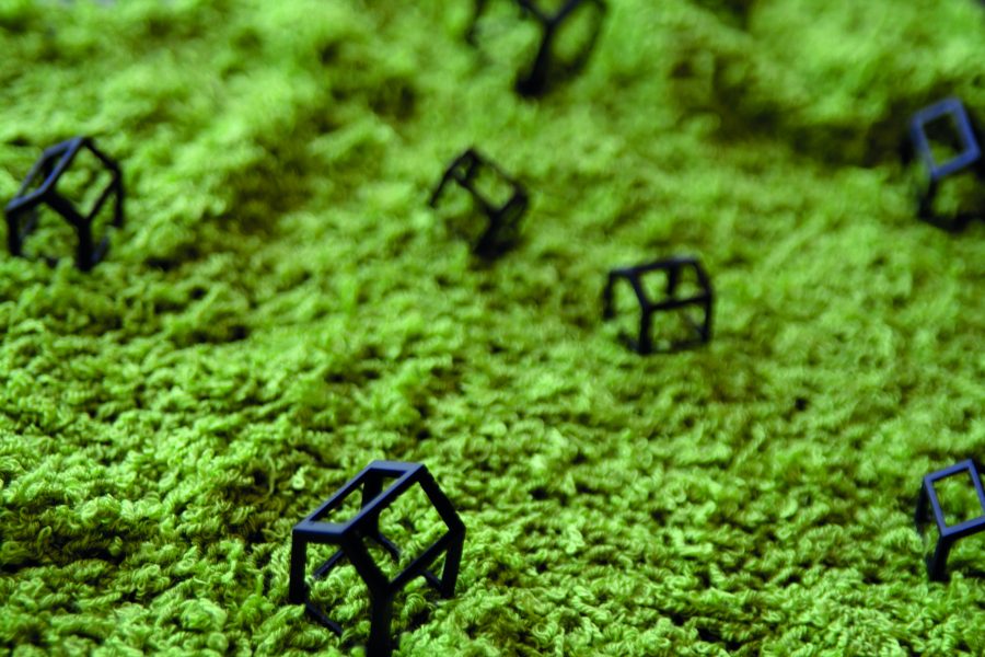 Kasvuhoone on kui paljas maja. Maja, millelt on võetud kõik üleliigne. 3D-printimise võimaluste piire kompides proovisin eri viise modelleerida prinditatavat materjali miinimumini. Kasvuhoone oma pretensioonitu, samas ruumika struktuurina, oli nende katsetuste tulem. Ka Šotimaa Skye saarte murused maastikud on paljastavad, nendele sobiks mõni taimedele kasvamiseks mõeldud varjualune. Nii kombineerisingi rohelise (silmuskootud) maastiku ja õrna (3D-prinditud) kasvuhoone – paljas maja paljal maastikul.