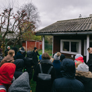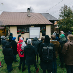 EKA arhitektuuriteaduskonna sündmustesari “Lõppmäng” sai 30. oktoobril lisa kevadel Kalaranna tänava ääres toimunud esimesele ruumiaktsioonile “Linnapaus”. Aktsiooniga „Aedlinn“ külastatati Pirita, Merivälja ja Randvere vahel paiknevat Mähe. “Aedlinn” tutvustas pühapäevasel rännakul urbanistikatudengite töid ja uurimusi (juhendaja prof. Maros Krivy), mis tegelesid Mähe aedlinna mutatasioonide ja muutustega peale Eesti taasiseseisvumist 1990. aastatel. Mähe aedlinna näol on tegu omapärase piirkonnaga, kus maa on jaotatud suhteliselt väikesteks kruntideks ning kuhu kehtinud piirangute tõttu lubati ehitada vaid tibatillukesi aiamaju. Nüüdseks on väikseid suvilaid ümberehitatud suuremateks elamuteks ning piirkonnast on saanud eklektiline, eriilmeline ja intrigeeriv keskkond. “Lõppmängu” korraldas 3. kursuse arhitektuuritudengite rühmitus ARHIABI, kes sündmusteseeria raames lavastavad erinevaid stsenaariume Eesti erinevate linnade argiruumis läbi sekkumiste ja installatsioonide, kutsudes kohalikke elanikke nii osalema kui ka lihtsalt vaatama. Lõppmängu tudengimeeskonda juhendab arhitektuuriosakonna professor, arhitekt Andres Ojari, linnaaktsioone toetab Eesti Kultuurkapital. Pildid: Tõnu Tunnel
