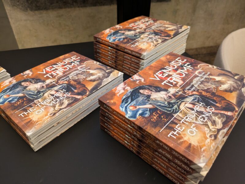 Pea kolm sajandit peidus olnud haruldase maali loo selle avastamisest prahi ja ämblikuvõrkude vahelt kuni täies hiilguses (taas)eksponeerimiseni võtab kokku Eesti Kunstiakadeemia rohkete illustratsioonidega kogumik “Venuse triumf”. Tekstid on koostanud protsessis osalenud ajaloolased, kunstiajaloolased, konservaatorid-restauraatorid, füüsikud-keemikud, pildindusspetsialistid jt. Lisaks keeruka restaureerimisprotsessi kirjeldamisele saab raamatust ülevaate nii maali enda kui rüütelkonna hoone ajaloost, kujunemisest Eesti esindushooneks ning lõuendplafoonide valmistamise tehnikast.