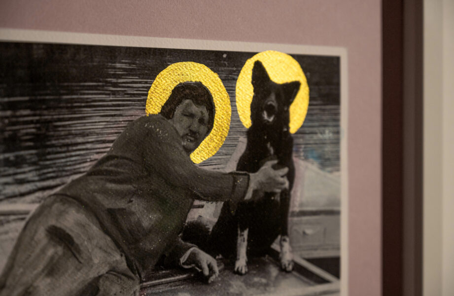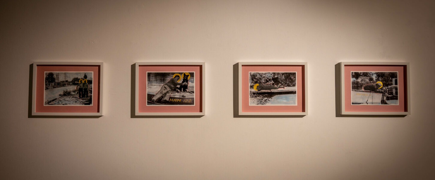 VEDELAD VARJUD PIIRIL on seeria Bütsantsi stiilis kollaaže, mis on inspireeritud sõbrunemise žestidest Kulgu piirkonna (ehk Narva Veneetsia) garaažiomanike vahel. See on mehelik, amfiibne territoorium tegemaks asju teisiti kui neid linnas tehakse ja pakub kohta lõõgastumiseks.