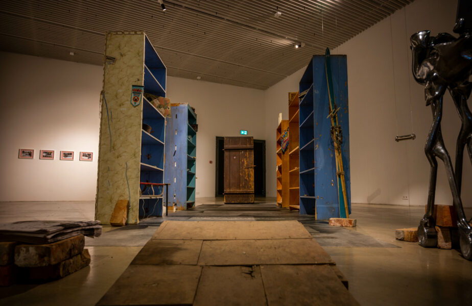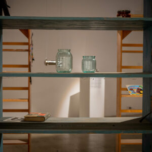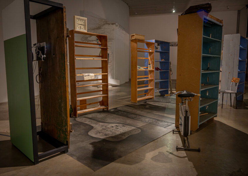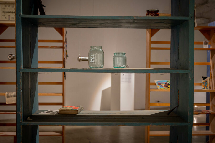То, что было скрыто и хранилось во тьме, приобретает особое очарование, когда извлекается на поверхность. И выставка позволяет нам в этом неоднократно убедиться, размышляя о накоплении материалов, посланиях в будущее, экзистенциалистской эстетике и убежищах, где можно узнать разные стороны собственного «я». Людям нужны укрытия и пространства, чтобы хранить вещи в темноте. Основная инсталляция посвящена этой теме и состоит из 4 частей: видеоинсталляция «Дверь в подвал», в которой Елена проводит нас по своему подвалу в Кохтла-Ярве; аудиовизуальная скульптура «Баю-бай» знакомит с сюрреалистичным видео, располагающимся в скульптуре в форме коляски; визуальное представление «Сартр внизу» из различных экзистенциальных посланий, найденных в местных подвалах; и «Подземные биографии», в которых рядом с личными историями представлен ряд извлеченных объектов.
