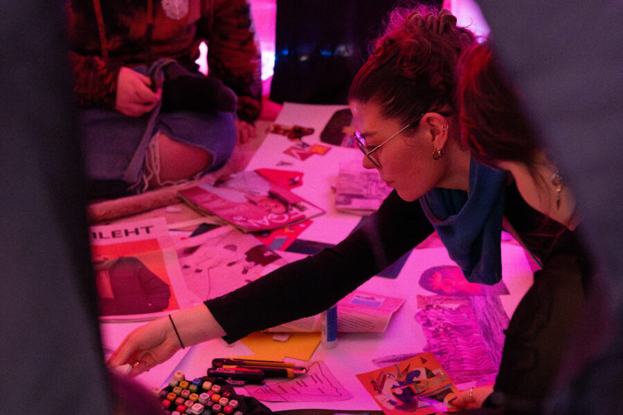 Töötoas osalejad on oodatud kodust kaasa võtma kasutuna seisvaid materjale (ajakirjad, kleepsud, markerid jms.). Töötuba toimub põrandal, patjadel istudes. Kui see pole sinu jaoks võimalik või mugav, siis anna sellest teada, et saaksime ruumi vastavaks kohandada.