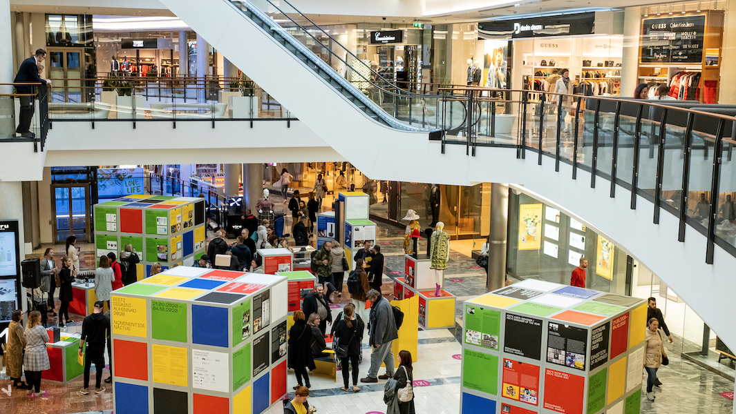 Eesti Disainiauhinnad 2020 nominentide näitus Viru Keskuse aatriumis on kaheks nädalaks täidetud 101 värvilise kuubikuga ning tutvuda saab Eesti viimase kahe aasta disainiparemikuga.