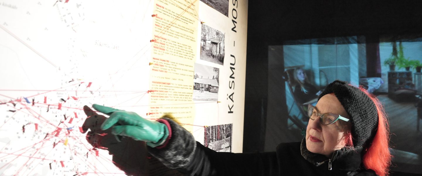 Eve Kask näitusel "Kuidas rääkida salapaigast seda reetmata" Foto: Andres Lõo