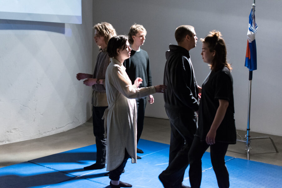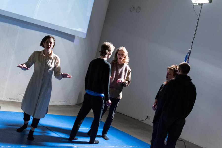 Nele Tiidelepa performance kuuele etendajale iseendaga, teistega, üle, kaasa ja taga rääkimisest