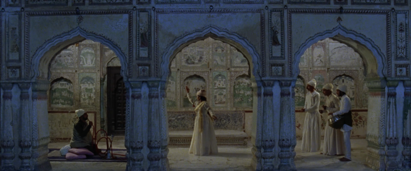 Nainsukhi miniatuur „Mian Zorawar vaatab tantsivat tüdrukut Zafari“ (umbes 1740-1745) leiab visuaalselt haarava vaste Dutta 2010. aasta filmis pahari maalijast.
