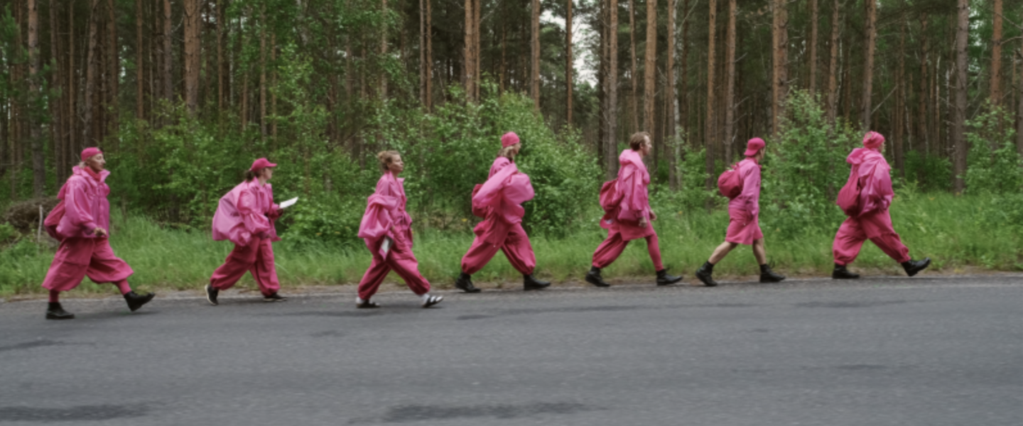 2023. aasta südasuvine Eesti. Magentaroosades kostüümides kümme kultuuritegelast sammuvad maailma pikimal moelaval läbi väikepaikade ja tolmavate külavaheteede Pariisi poole. Ainult Eiffeli torni asemel paistab neile samanimelise küla ratsamaneež Lääne-Virumaal.