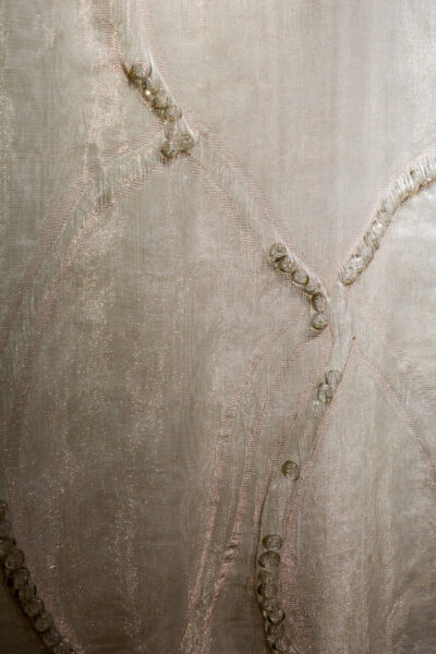 Tema kangasteljes on omakasvatatud siid paigutatud metalliliste ja loomsete materjalide sidemete ja kohtumiste süsteemidesse. Kasvavad erineva raskuskeskme ja tihedusega kihid ja põllud. Näitustel ulatub kootud materjal ruumiliste ja kohaspetsiifiliste installatsioonideni.
