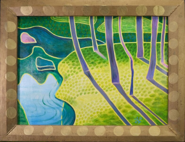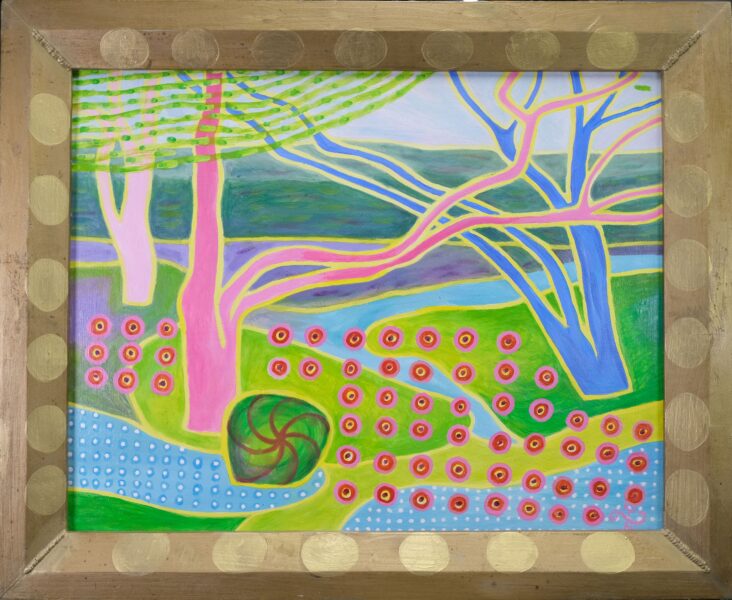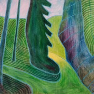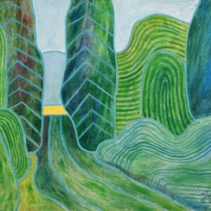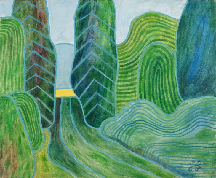 Näituseteostest moodustavad paarid ja kolmikud eri tüüpi värviküllastest loodusmaastikest, mis küll inspireeritud konkreetsetest kohtadest, kuigi pole selgelt äratuntavad – koduaed Meriväljal ja park Haapsalus, jõeäärsed rajad ja põldudevahelised maanteed, kohalikud ja kaugemad samblatemplid, akendest avanevad panoraamvaated. Lisatähenduse annavad ka autorile omased väikesed vimkad teoste vormistamisel, näiteks maalikihist läbikumav kareda pinnaga puitlaastplaat, antikvariaadist pärit väikekodanlikud raamid või lustakad pilveskulptuurid.