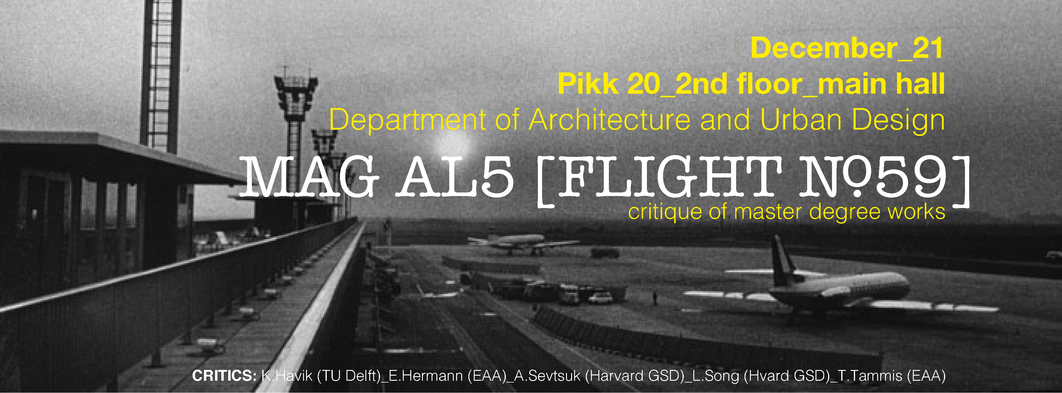 21. detsembril kell 9.20 algab Pikk 20 III korruse saalis arhitektuuri ja linnaplaneerimise magistrikursuse I poolaasta väliskriitika. Väliskriitikutena osalevad Klaske Havik (TU Delft), Andres Sevtsuk (Harvard GSD), Lily K. Song (Harvard GSD), Toomas Tammis ja Eik Hermann. Olete oodatud kuulama!