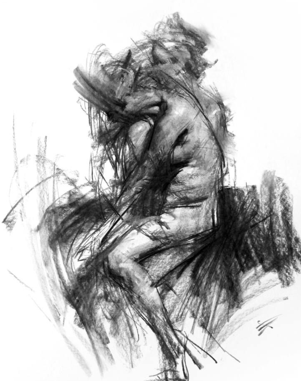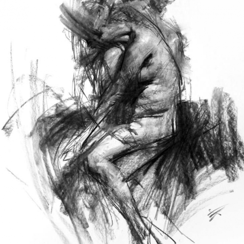 - päev. Erinevate materjalide kasutamine naisakti puhul. Tušš, süsi jt