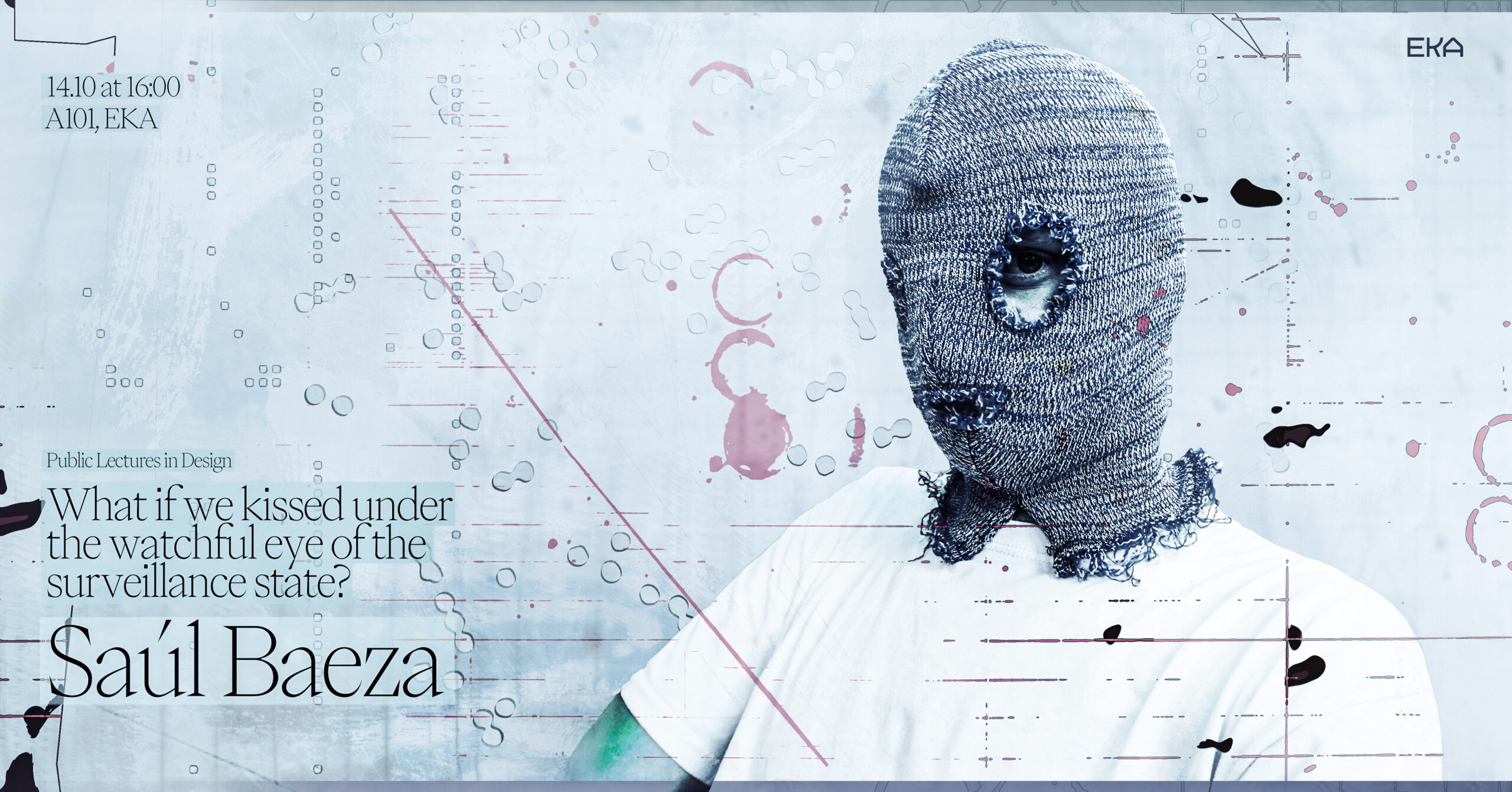 14. oktoobril kell 16.00 toimub EKA-s ruumis A101 Saúl Baeza avalik loeng “What if we kissed under the watchful eye of the surveillance state?”. Loeng on osa disainiteaduskonna avalike loengute sarjast “Public Lectures in Design: Adjusting Perspectives”, mida kureerivad Stella Runnel ja Taavi Hallimäe.