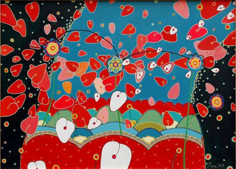 Näitusel saab näha Pusa viimaste aastate loomingut, kus kunstnikule omaselt ei puudu eredad värvid ja katkematud jooned.