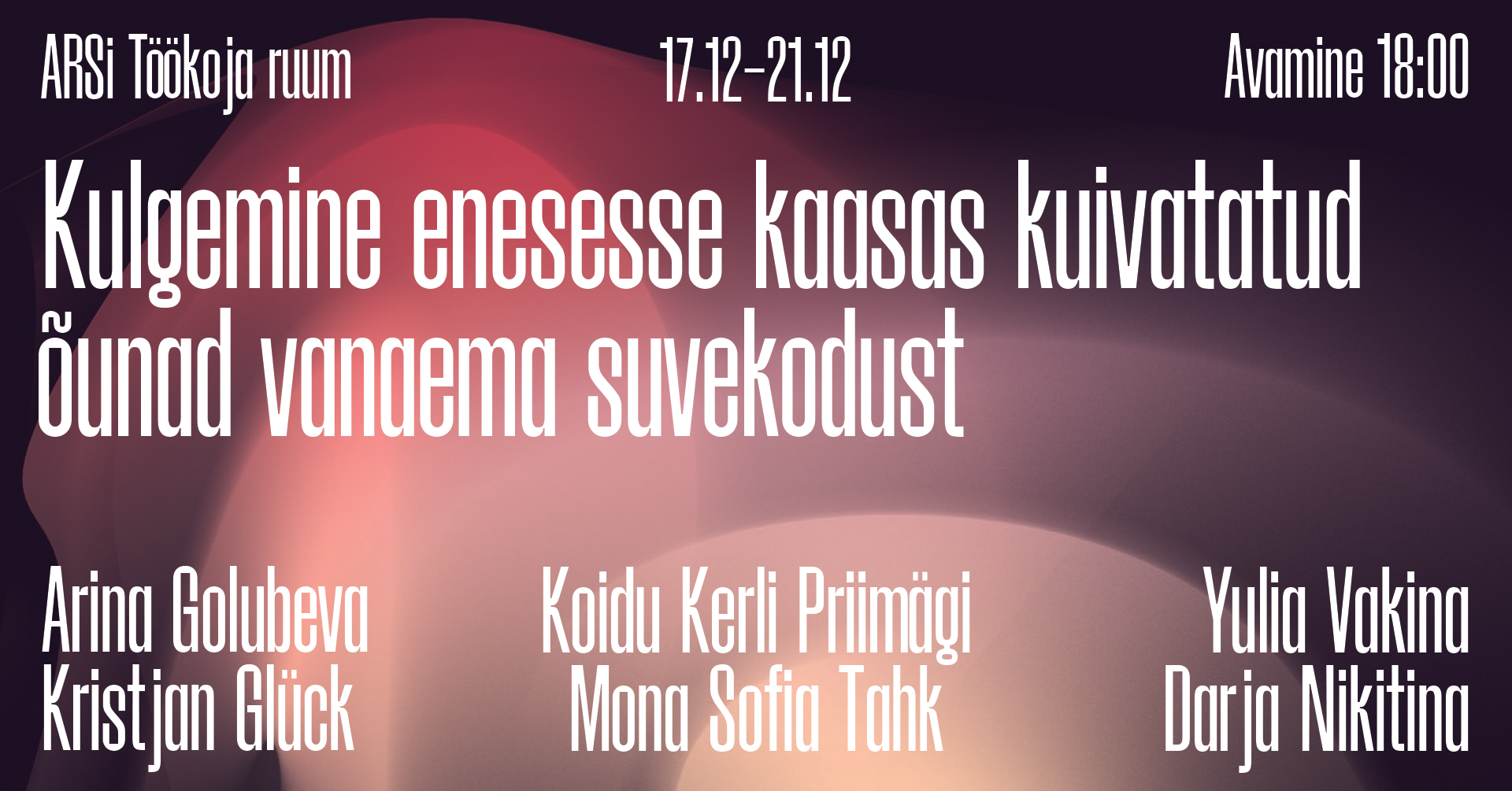 Detsembrikuus avaneb ARSi Töökojas noorte kunstnike näitus „Kulgemine enesesse“, mis käsitleb elu kui looklevat ja mitmetahulist teekonda. Näitus on sündinud Eesti Kunstiakadeemia disainiteaduskonna installatsiooni kursuse raames ning toob esile teosed, mis peegelduvad isiklikest läbielamistest, kodukolde ja soojuse igatsusest, elu sõlmpunktidest ning inimese ja keskkonna vahelistest seostest.