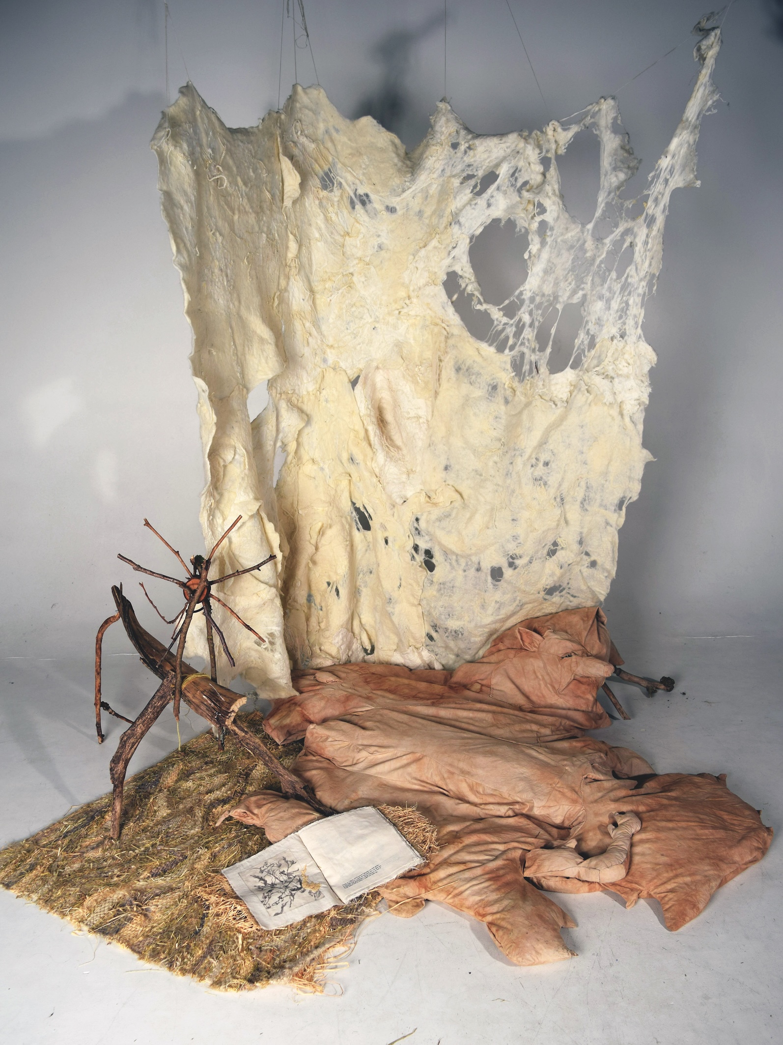 Installatsioon põimib kokku erinevaid lugusid Oskar Looritsa raamatust “Eesti rahvausundi maailmavaade” ning minu enda lapsepõlvemälestusi. Nende jutustuste põhjal lõin ruumi, mis tundus kodusena, kasutades selleks looduse poolt pakutud materjale. Mäletan, kuidas mu vanaema alati hoiatas mind – ära jää magama keset sookailu välja, muidu ei pruugi sa enam kunagi ärgata. Loorits kirjutab oma raamatus samuti vaimudest, kes kaitsevad metsa pahatahtlike inimeste eest, ilmutades end huntide, madude või teiste loomadena. On ka lugu sellest, kuidas ketramiseks saab jõudu ammutada Ööemalt, kui kuuled öösel öömardikate praksumist.