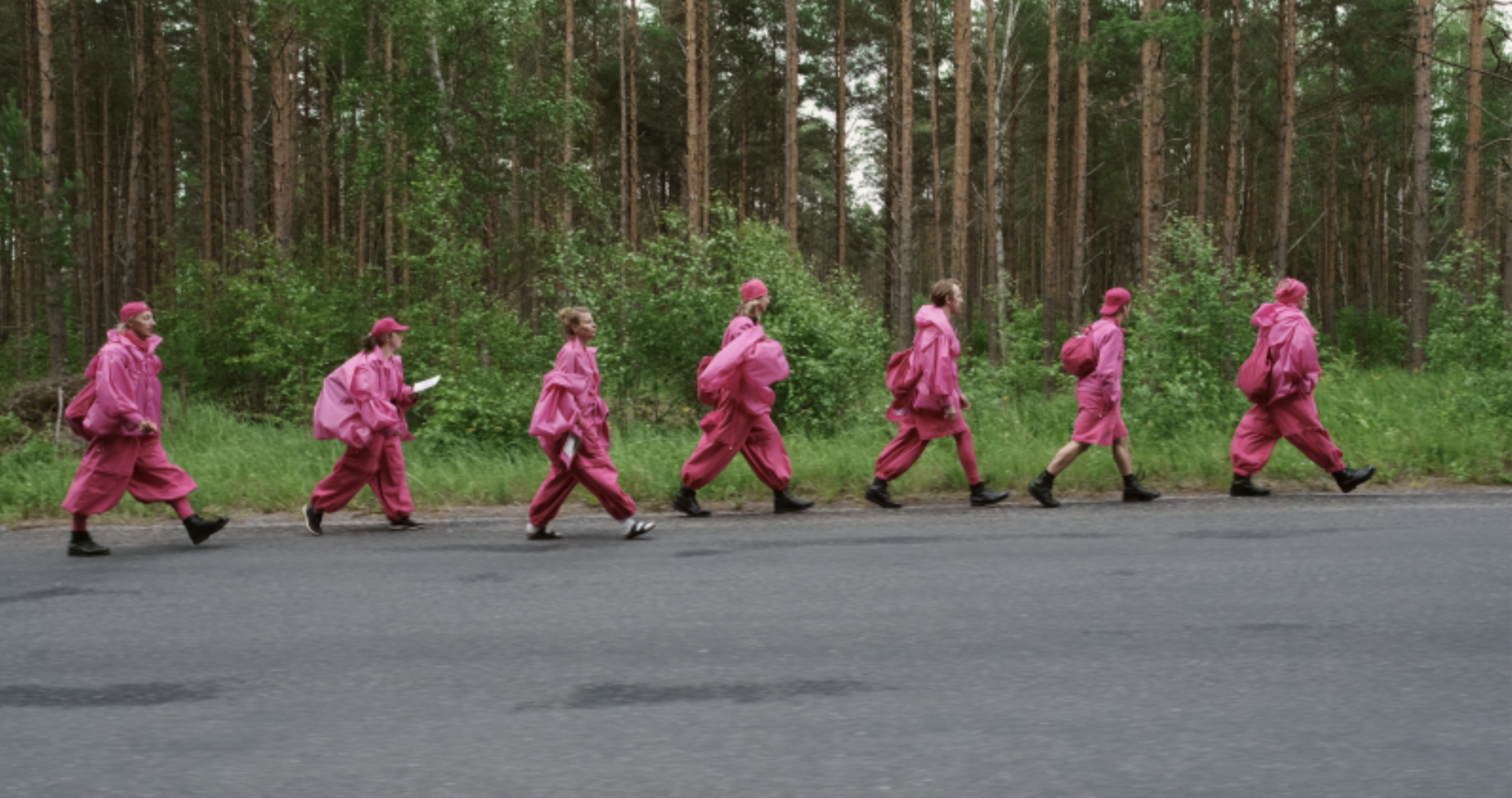 2023. aasta südasuvine Eesti. Magentaroosades kostüümides kümme kultuuritegelast sammuvad maailma pikimal moelaval läbi väikepaikade ja tolmavate külavaheteede Pariisi poole. Ainult Eiffeli torni asemel paistab neile samanimelise küla ratsamaneež Lääne-Virumaal.