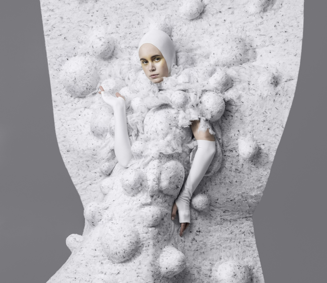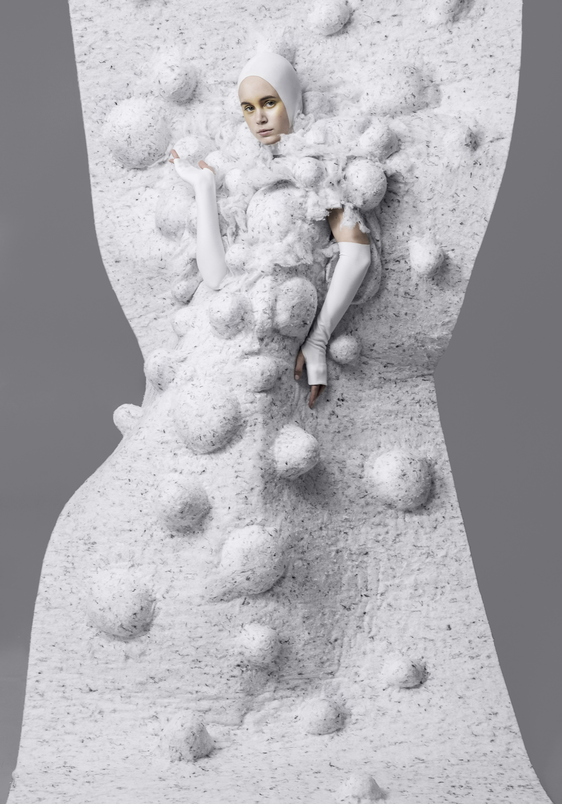 Liisi Eesmaa eestvedamisel läbi viidud kursus provotseeris tudengeid oma toormaterjaliga. Kõik vormid on valminud pehmemööbli täiteks mõeldud ruudukujulistest tekstiilplaatidest, mis äratati prügimäele mineku asemel uuele elule. Tegu on ühe keerulisema materjaliga vormieksperimentide seeria ajaloos, mis jooksutas kokku ajude kõvakettaid ning kohmetas osavamaidki käepaare, sest materjal ei allunud hästi moeloojate põhilistele töövõtetele – lõikamisele ja õmblemisele. Seetõttu tuli leiutada pidevalt uusi meetodeid, kuidas luua midagi millestki, mis ei olegi kangas. Näiliselt ilmetust ning kangekaelsest materjalist kasvas siiski ühel hetkel välja imetabaste karakterite maailm, kus unenäoline lind teeb 60 tiivaripsutust, emapuu “juured” on endasse kogunud 35 meetrit materjali, nunnarüü peakate võtab enda kanda 8 kg koorma ja helidega täidetud mullilised pinnad haaravad kaasa oma uinutava teraapilisusega. Iga olend selles maailmas jutustab vaatlejale oma loo, lennutab sind kõrgele ja hullutab kas suurema või väiksema halli doosiga.
