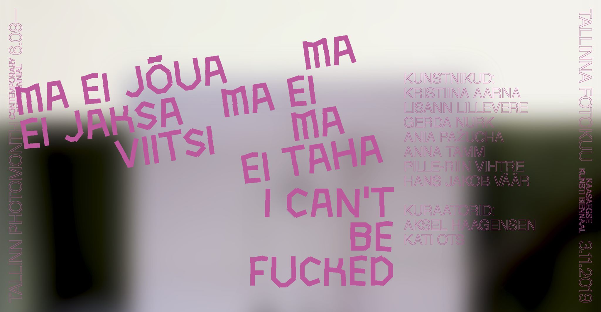 „ma ei jõua ma ei jaksa ma ei viitsi ma ei taha“ on Eesti Kunstiakadeemia fotograafia, kaasaegse kunsti ja kuraatoriõppe tudengite koostööprojekt. Näituse ettevalmistusprotsessis oli kesksel kohal tudengite omavaheline mõttevahetus. Lähtekohaks võeti fotoosakonna tudengite eelmise õppeaasta jooksul valminud stuudioprojektid. Aruteludest välja kasvanud edasiarendustest on käesoleval näitusel loodud uus tervik, milles avaldub iga kunstniku käekiri ning mida seovad uued temaatilised suunad.