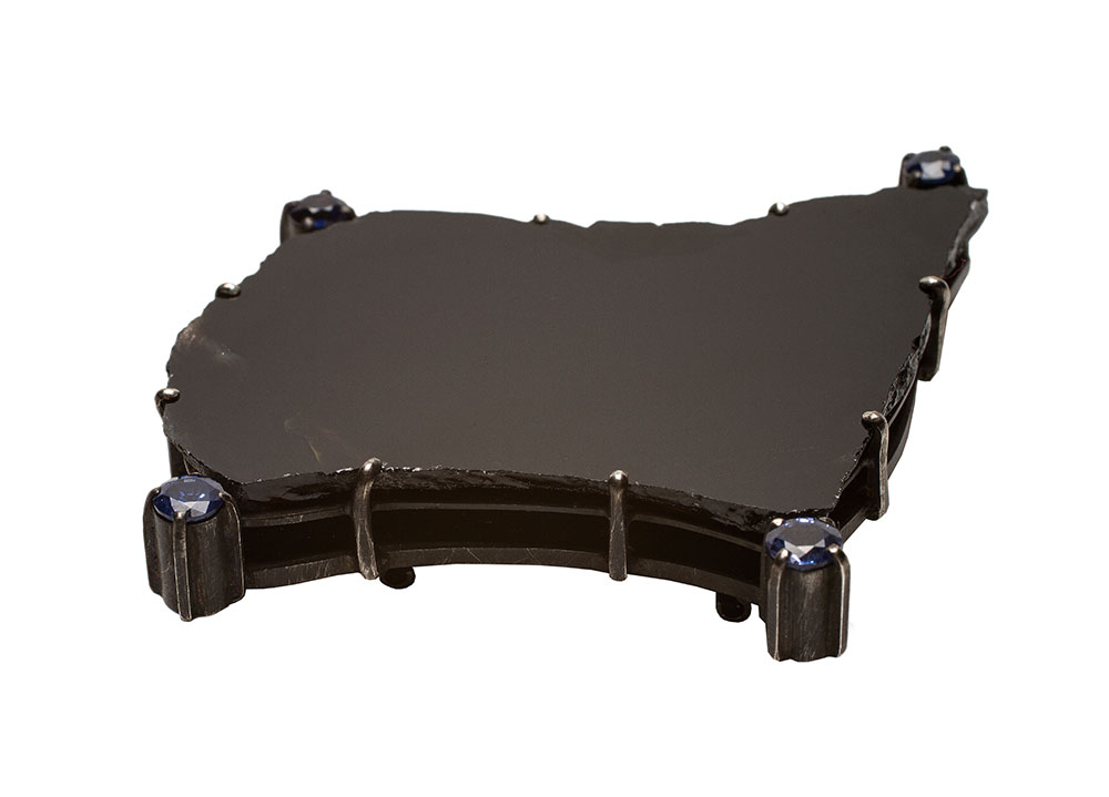 Kadri Mälk_rinnaehe Hing. Mõranenud hing_must turmaliin, hõbe, tumesinised safiirid_2018