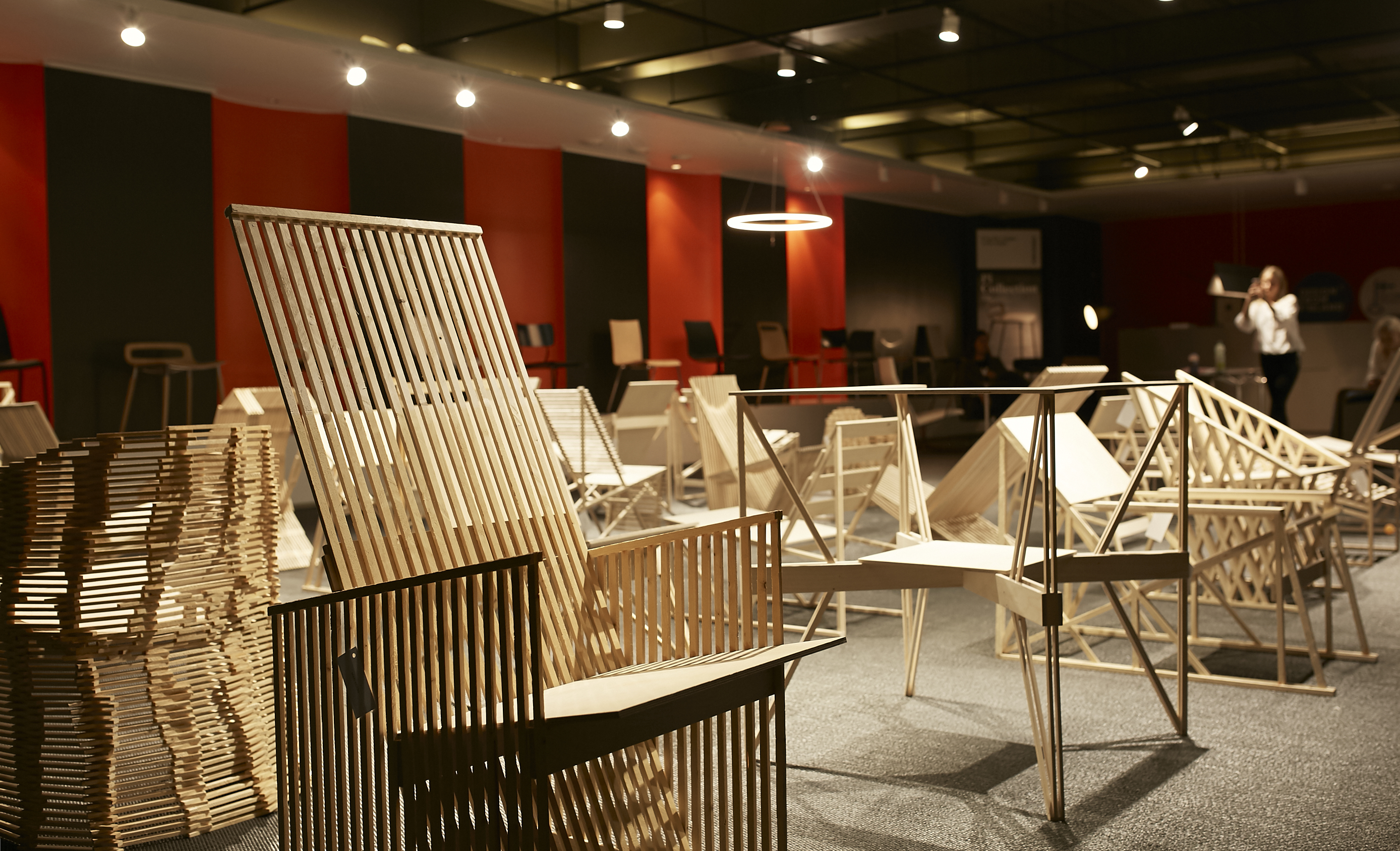 Eelmise aasta esimese kursuse tudengite disainitud istemööbel on loodud äärmiselt piiratud materjalivalikut – tükk vineeri, puupulgad ja liim – kasutades. Tudengite juhendajaks oli Soome disainer ja arhitekt, Harvardi Ülikooli disainiõppejõud Ilkka Suppanen ning disainer Martin Relander, kes juhendavad EKAs ka sel aastal toolide erialaainet, mille idee seisneb tooli kavandamises praktiliselt võimatust materjalist.