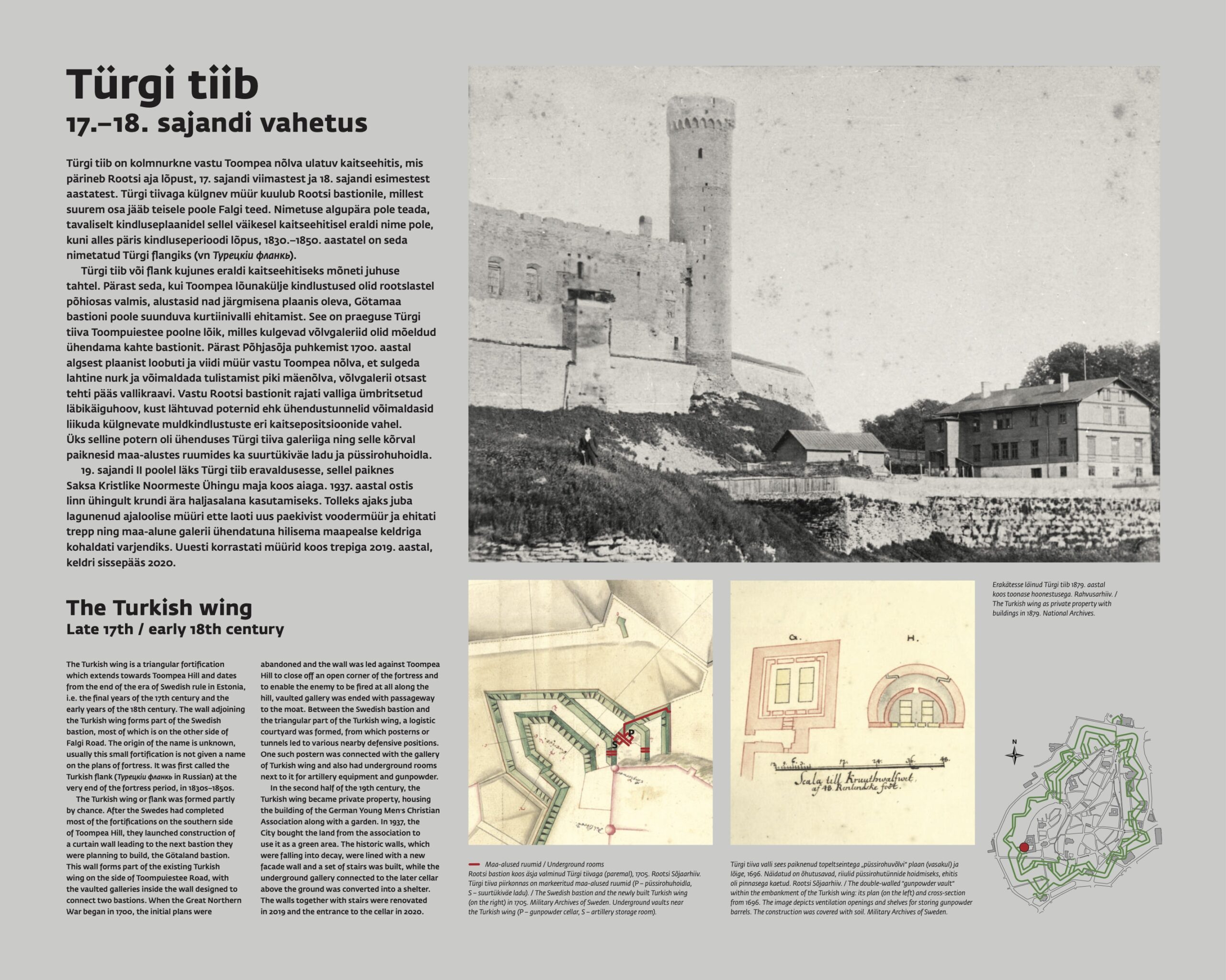 Türgi tiib asub otse Pika Hermanni torni all. See on osa Rootsi ajal rajatud ja ka hiljem kasutusel olnud kaitserajatisest. 1930. aastatel rajati sinna tsiviilvarjend.