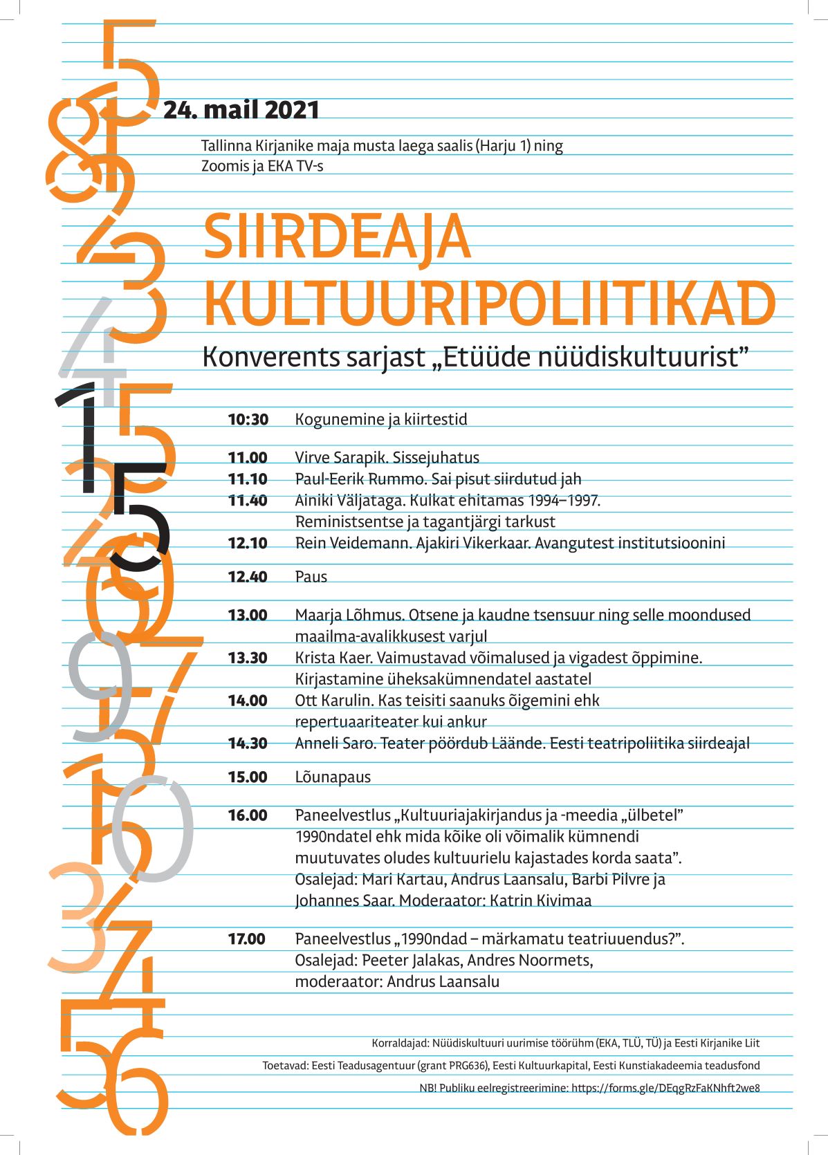 Korraldajad: Nüüdiskultuuri uurimise töörühm (EKA, TLÜ, TÜ) ja Eesti Kirjanike Liit