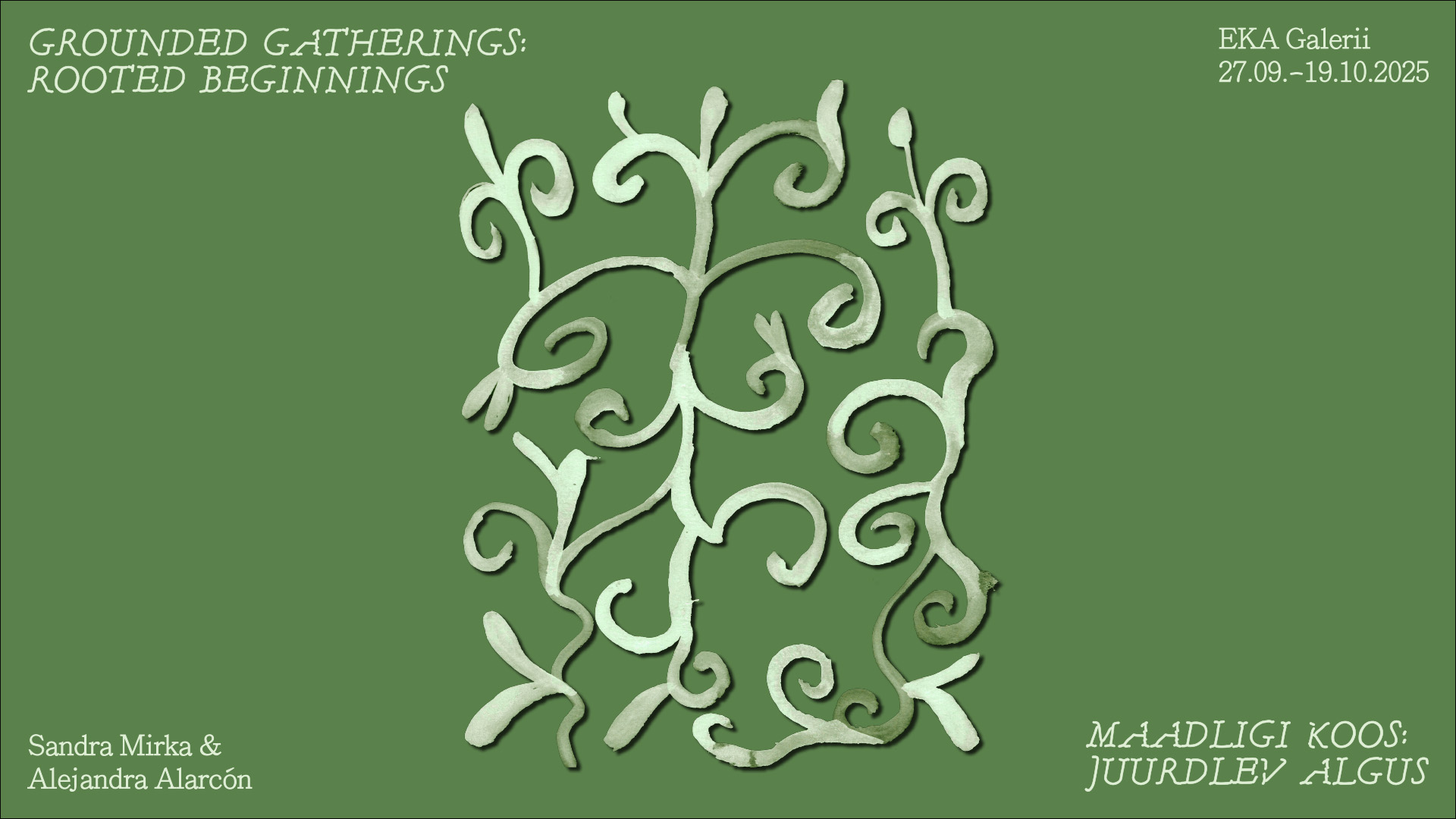Alejandra Alarcón & Sandra Mirka „Maadligi koos: juurdlev algus“ EKA Galeriis 27.09.–19.10.2025