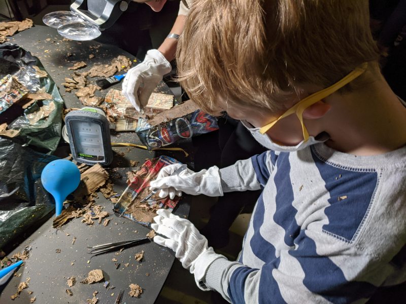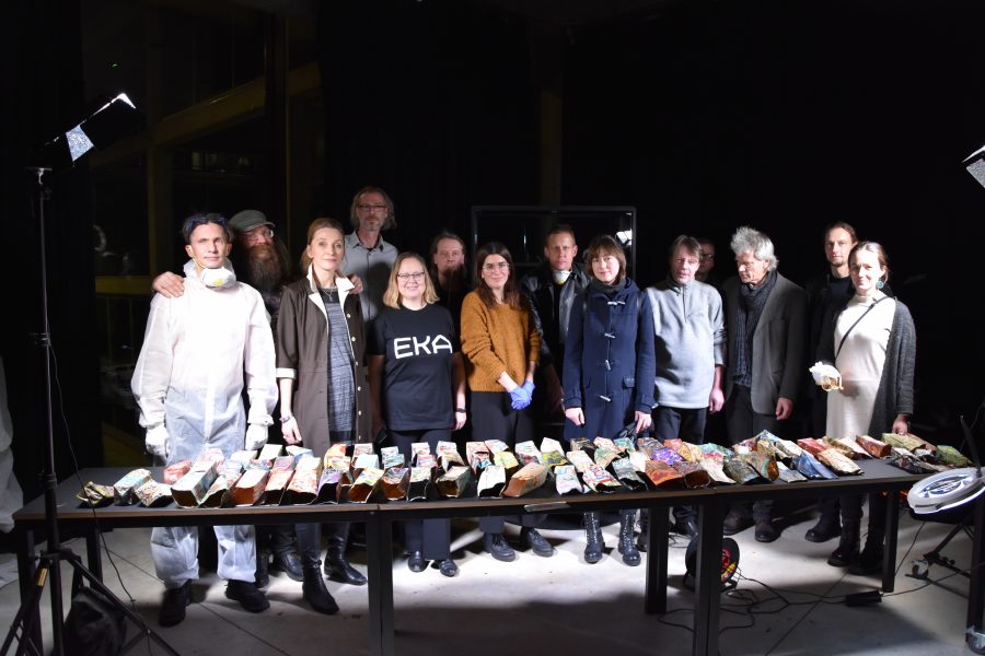 Laupäeval, 7.detsembril leidis EKA kolmandal korrusel aset muinsuskaitse ja konserveerimise osakonna ja Polügoonteatri ühisetendus EKSHUMEERIMINE, mille käigus avati salapärane tume prügikott ja kaevuti selle sisusse. Päevavalgele tulid Erki Kasemetsa poolt kuupäevamaalingutega kaetud erinevas lagunemisastmes pakendid, millest varaseimad pärinevad toonasest Tallinna Kunstiülikoolist, aastast 1995. Kokku tuvastati 77 ühikut, mis restaureerimisalaseid töövõtteid järgides hoolikalt puhastati ja ajutiselt klaasvitriini hoiule asetati. Vitriiniga on huvilistel selle nädala jooksul võimalik ka lähemalt tutvuda. Esialgse vaatluse põhjal hindas professor Hilkka Hiiop leidude seisundit põhiosas rahuldavaks. Õhku jäi aga küsimus – mis saab väljakaevatud jäänustest edasi? Milliseid säilitusvõtteid on kohane rakendada? Milliseks võiks kujuneda kuupäevadega karpide uus elu?