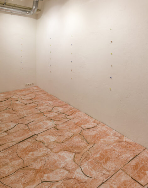 Kristin Reimani isikunäitus “Marble Balance”/ “Marmortasakaal” on tervet galeriipinda hõlmava ja materjali kaudu tajuillusioone uuriva ruumiinstallatsiooniga. Traditsiooniliselt on marmor olnud hinnaline ja väärikas materjal, mistõttu on ka marmori imitatsioonid väga populaarsed. Kristin Reiman loobki näitusesaali keskkonna, kus materjali suhtes tekkinud ootused ja eeldused üldsegi tõeks ei pruugi osutuda.