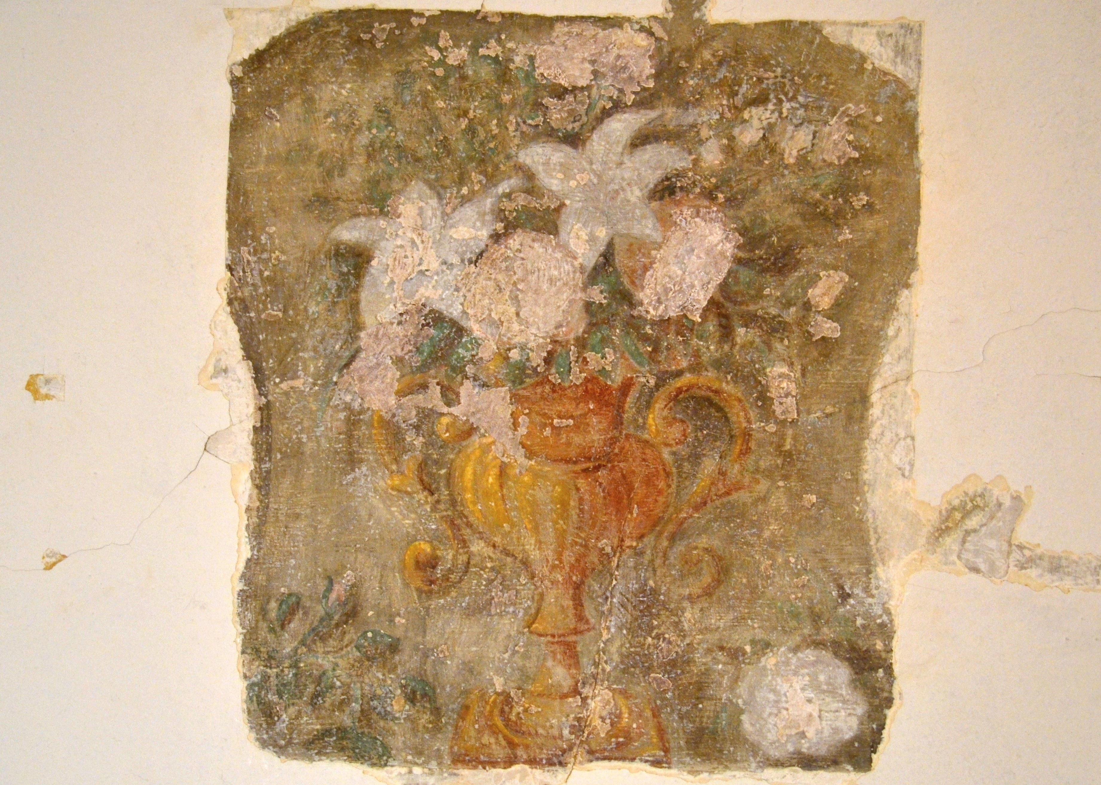 Kuna eelmise aasta lõpus toimunud õpitoa käigus tulid Lihula mõisa saali laest ootamatu üllatusena välja väikesed maalingut meenutavad fragmendid (vt. EKA sündmuste kroonika), viisime seal läbi täiendavad uuringud. Toona oletasime, et tegemist võiks olla akantus- või taimornamendi laadse kompositsiooniga. Maalingut välja puhastades selgus aga vastupidiselt ootustele, et sellel on kujutatud lillevaasi rooside ja liiliatega. Samasugune kompositsioon paikneb peegelpildis lae teise otsakülje tsentris: see avati uuringute käigus väiksema sondaažina. Tegemist on professionaalselt maalitud kompositsiooniga kuid lae suurust ja kõrgust arvestades mõjub see ebaproportsionaalselt väiksena. Hoolimata põhjalikest uuringutest mujal laes maalinguid ei leitud.