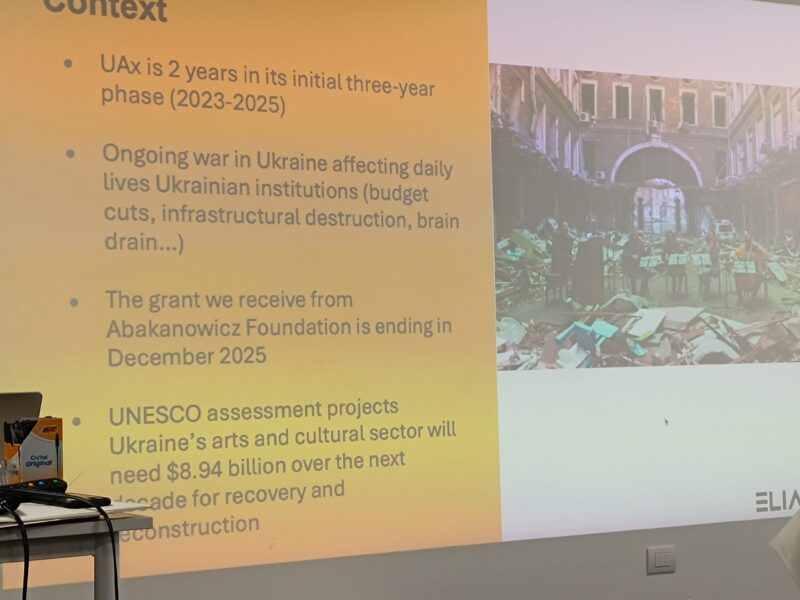 Toimus kümneid paralleelseid ELIA sessioone ja ettekandeid, mis kõik uurisid, kuidas kunstnikud panustavad ühiskonda ning milliseid väljakutseid sellega seoses ette võib tulla.