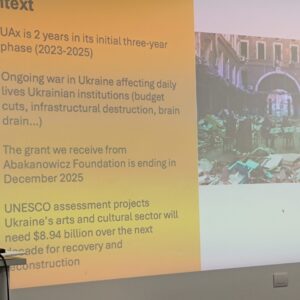 EKA kunstiteadlane Maarin Ektermann pidas ettekande “Guests? Intruders? Good-doers? Challenges of bringing artists into dialogue with heritage and communities”, mis tugines seitse (7) aastat väldanud projektile “Kunstnikud kogudes (kollektiivides ja kogukondades)”.