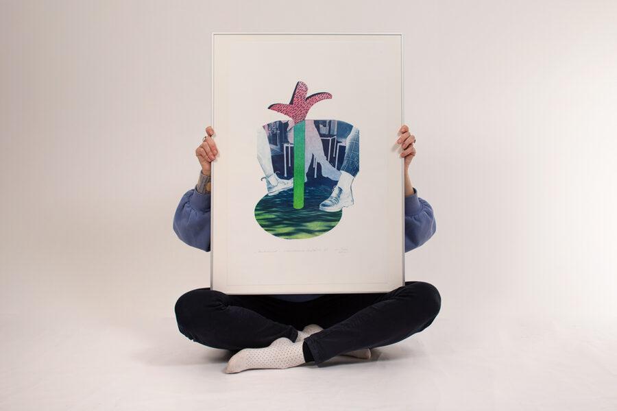 Töö kuulub seeriasse “Lauaalused maailmad”, mis sai tõuke 2021. a. EKA kohvikus lauaalususi pildistades. Kohvikud on sageli ideede ja tegude alguspunktiks. Loometuhinas võib kogu ümbrus muuta oma vormi ja värvi. Pildil paremale jääv nöörkingake ruudulise püksisäärega kuulub graafik Kadri Toomile, kes on olnud autorile tähtsaks õpetajaks ja inspiratsiooniks.