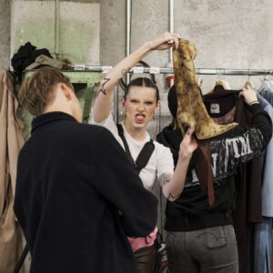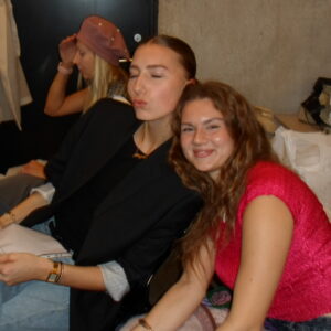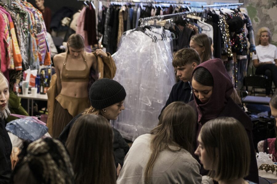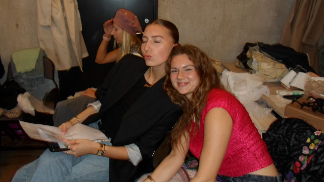 Mette, Elisabet, Margared: Meie ülesanded varieerusid vastavalt disainerile. Näiteks Vilve Undiga saime nelja peale igaüks endale kaks modelli, kelle eest me vastutama pidime. Jälgisime, et modellidel oleks kõik komplekti osad ilusti seljas, aksessuaarid peal ja aitasime lava taga kiiret komplekti vahetust teha. Kui see hetk tegelikult kätte jõudis, siis olenemata sellest, et olime korralikult kõik ette valmistanud, oli lava taga kaos, 10 kõige stressirohkemat minutit!