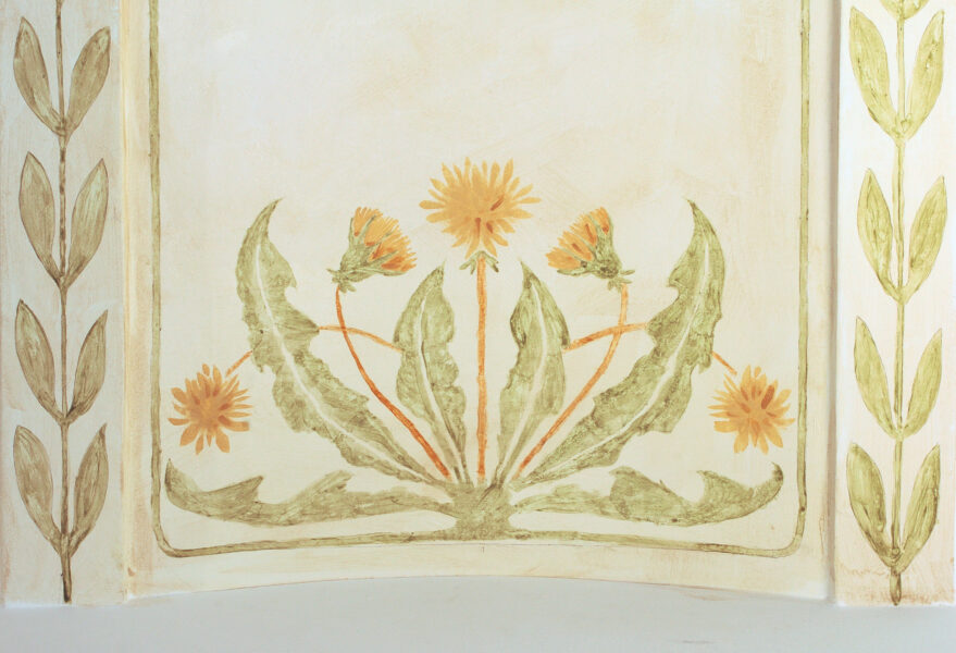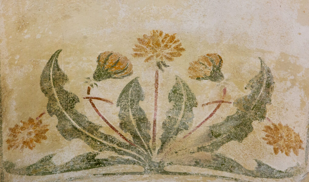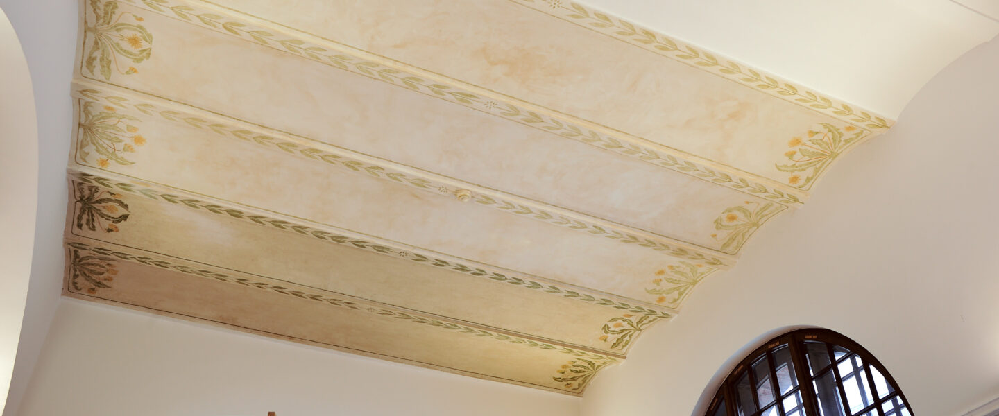 10.-13. märtsil rekonstrueerisid muinsuskaitse ja konserveerimise eriala tudengid võilillemotiiviga laemaalinguid Eesti Panga muuseumi talurahvasaalis.