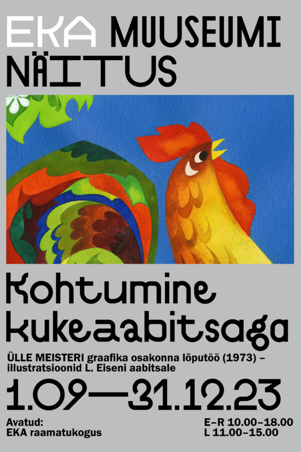 EKA raamatukogus saab vaadata õppeaasta algust tähistavat näitust „Kohtumine kukeaabitsaga“. EKA muuseumi koostatud väljapanekul särab akvarellitehnika kirkuses Ülle Meisteri tõeliselt meisterlik diplomitöö, aabitsa illustratsioonid aastast 1973.