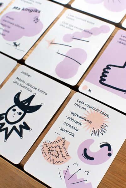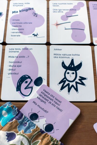 Kaardipakis on 42 kaarti küsimuste ja ülesannetega, mis aitavad süveneda kunstiteostesse, arendada sõnavara, rääkimisoskust ja grammatikat. Küsimused on jaotatud kolmele keeletasemele (A1–A2, B1 ja B2). Lisaks sisaldab pakk jokkerikaarte, mis annavad võimaluse ise ülesandeid välja mõelda. Kaardid sobivad kasutamiseks nii üksi kui ka grupis, klassiruumis, galeriis või sõpradega. Kunstikaarte esitleti 18. septembril Narva kunstiresidentuuris NART ning kohalviibijad said ka kaardipakkide omanikeks. Kõik soovijad saavad kaardipakke edaspidi laenutada Tallinna ja Tartu kunstimuuseumitest ja galeriidest alates oktoobrist.