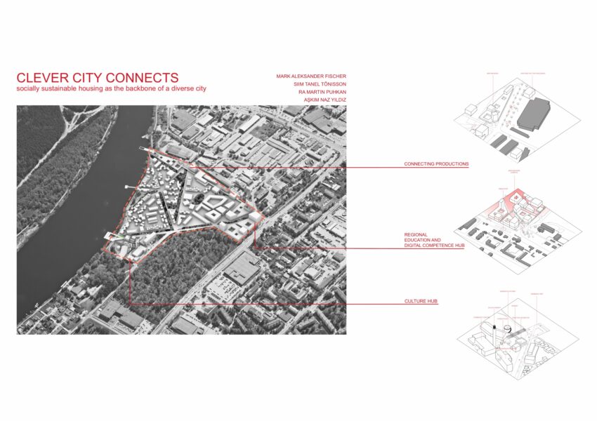 Kavand „Clever Cities Connects“ on autorite sõnul planeering, mis võtab fookusesse uue ja olemasoleva linna ühendamise ja mille sihiks on olla Eesti esimene sotsiaalselt jätkusuutlik uusarendus. Riia tänavale nähakse ette uut trammiliini, mis võimaldaks planeeringul olla vahelüliks Rail Baltica raudteejaama ja vanalinna vahel. Ankrupunktidena nähakse kultuurilinnakut endise katlamaja aladel ja uut tihedat ärilinnakut, mis on tugevalt integreeritud olemasoleva tööstusalaga krundi idapoolses otsas. Selleks, et planeering oleks sotsiaalselt jätkusuutlik ja uues linnaruumis oleks tagatud tugev kogukonnatunne, on kavandatud nii üürimaju Pärnu elanikele kui ka kooperatiivseid kortermaju.