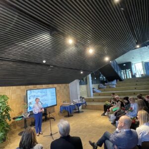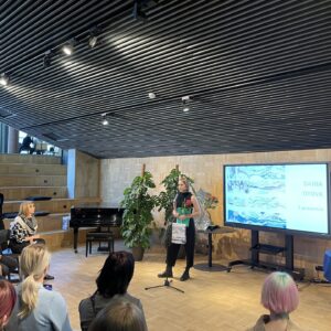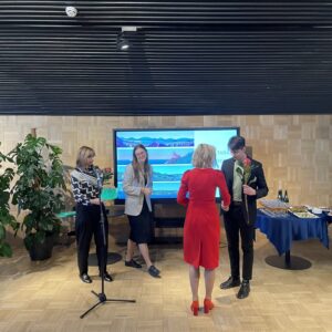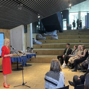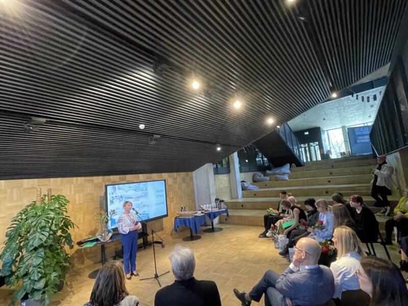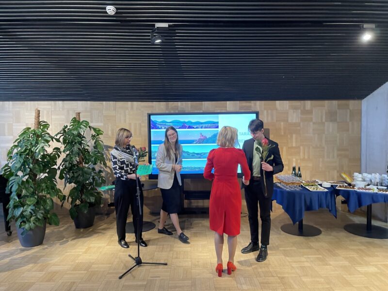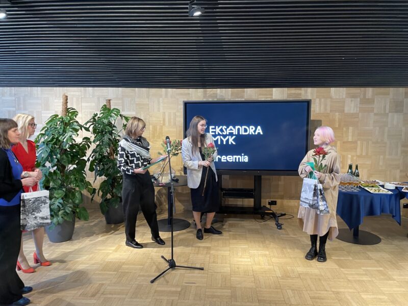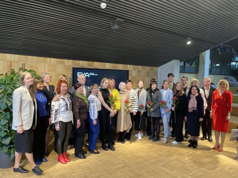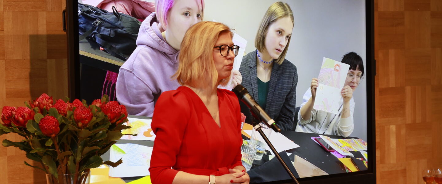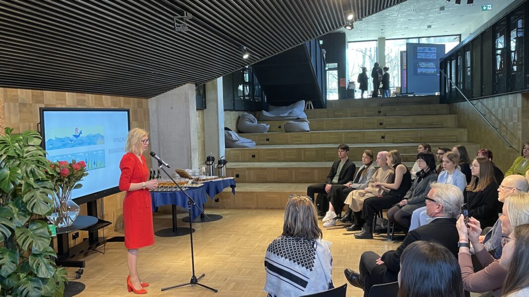 Ukraina tudengeid tänab kultuuriminister Piret Hartman, ekraanil keskel Daria Titova. Foto: Andres Lõo